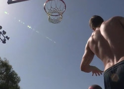 Three handsome guys with big cocks in the garden give blowjobs sex jerking off and cum in mo