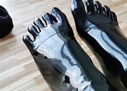 Putting on latex toe socks and shoes