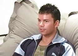 Str8 hairy lad Steve B. solo jerking and cuming on sofa
