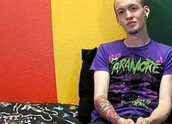 Mustache Twink Breaks a Sweat While He Sucks His Own Cock In Black Socks and Tank Top