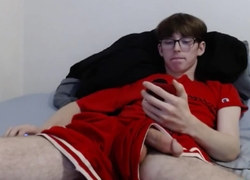 Horny College Boy Jerking off in Bed while waiting for StepDaddy