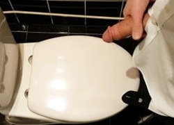 Caught hot sexy colleague secretly masturbating after pissing in office restroom during Xmas party on jerking co-worker