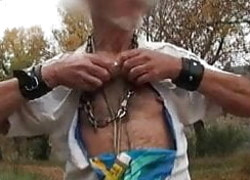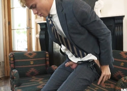 Dom Mickey Taylor jerking off restrained sub Jonny Parker