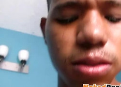 Skinny latino Gwenndal blows daddy and cums after bareback