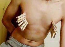 BDSM self CBT and nipple pain, in artistic Cracky style