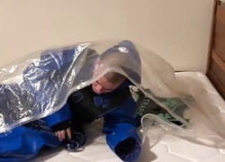 Jul 9 2023 - VacPacked in slvrbrboy's coveralls with my blue pup gear and jade harnesses