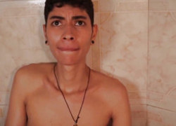 Hot Skinny Twink Jerking His Big Cock in the Shower Shooting His Thick Cum