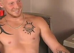 Dom Mickey Taylor jerking off restrained sub Jonny Parker