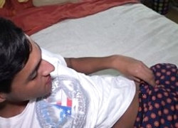 asian guy jerking his cock on bed